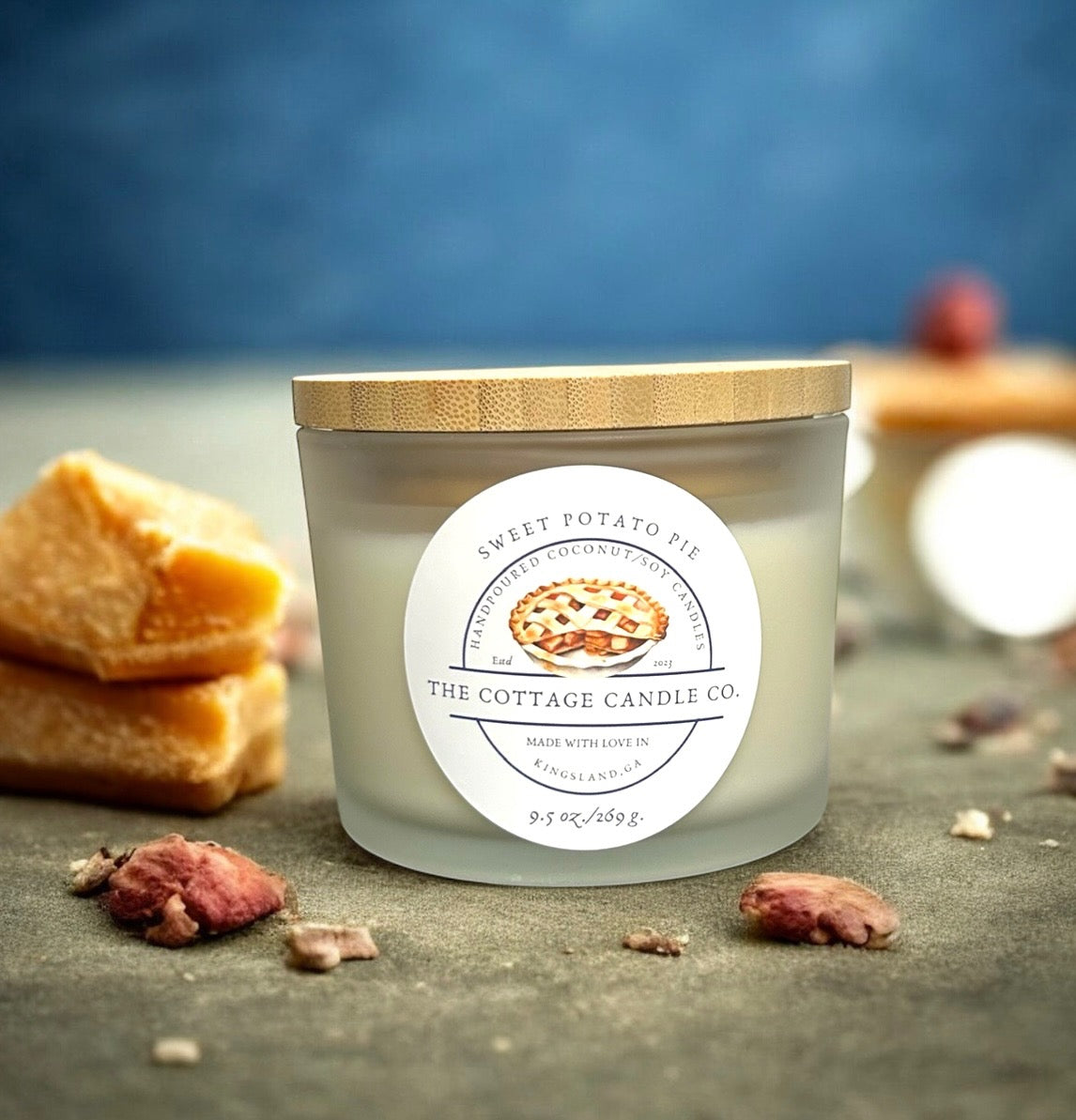 We're excited for our newest scent in the 2025 Fall Collection! This candle smells just like your grandma's Sweet Potato Pie on Thanksgiving.